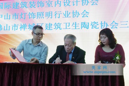 國(guó)際建筑裝飾室內(nèi)設(shè)計(jì)協(xié)會(huì)、中山市燈飾照明行業(yè)協(xié)會(huì)、佛山市禪城區(qū)建筑衛(wèi)生陶瓷協(xié)會(huì)三方戰(zhàn)略合作簽約