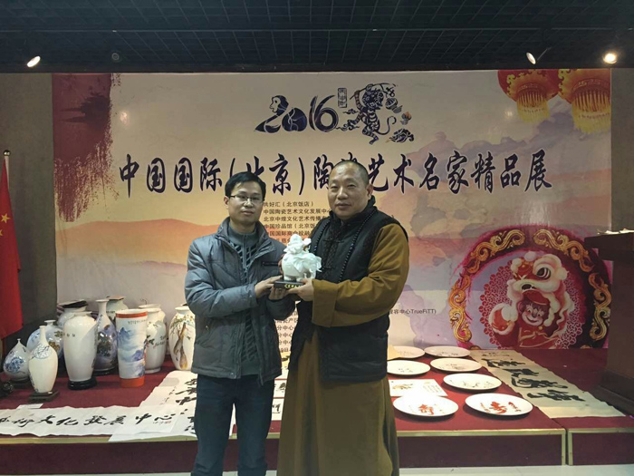 由中國(guó)陶瓷藝術(shù)文化發(fā)展中心和共好匯(北京飯店)聯(lián)合主辦,中華陶瓷網(wǎng)、中國(guó)國(guó)際商會(huì)投融資委員會(huì)等協(xié)辦的2016年中國(guó)國(guó)際(北京)陶瓷藝術(shù)名家精品展于2016年1月19日至22日在北京飯店展出,中華陶瓷網(wǎng)及德化縣博緣陶瓷文化有限公司組織當(dāng)代德化陶瓷名家鄭志德、顏松柳、蘇杜村、李甲棧、邱玫瑰、陳戴茹、張祥琦、劉育發(fā)、李錦峰、林建平、林彬彬、鄭清海、陳清宜、曾慶成、陳廷實(shí)、王順、陳建陽(yáng)等藝術(shù)家共計(jì)近百件作品展出。