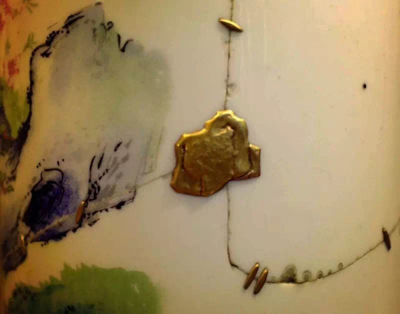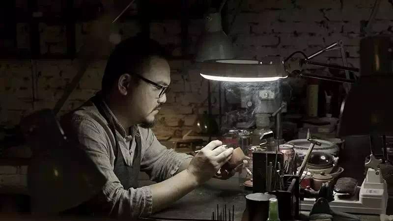 曹慶勵,創(chuàng)辦譽悟居,乃聽松問泉之所。善金工鋦活,好品茗聞香栽花掛畫,不善言語。師從第五代鋦瓷非遺傳人王振海(王老邪),成為第六代傳承人。已從事專業(yè)鋦瓷2年,亦愛好朩雕,石雕。