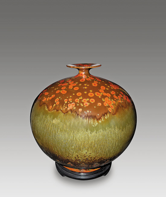 “曜變天目釉在日本東京博覽館被評(píng)為世界級(jí)瑰寶。1993年我去日本時(shí)就是在博覽館看見的,但日本人也沒有研究出如何恢復(fù)這項(xiàng)技術(shù),我當(dāng)時(shí)照了相回來研究,立志讓曜變天目釉重現(xiàn)于世。前后十多年,我花了幾億元。”林禮騰感嘆,“這些年的苦真是一言難盡。一窯陶瓷要十幾萬元,一失敗就一分錢都不值了,說白了做試驗(yàn)就是在燒錢,原料細(xì)微的變化、窯爐溫度、擺放位置的變化等因素都會(huì)產(chǎn)生影響,甚至帶來意想不到的結(jié)果。”