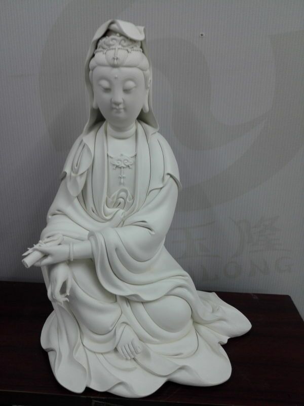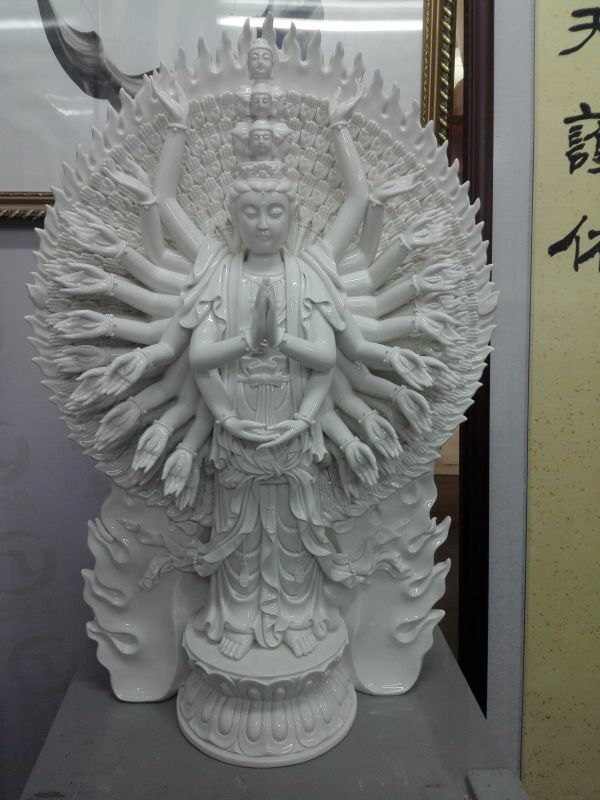 中國(guó)企業(yè)發(fā)展促進(jìn)會(huì)陶瓷委員會(huì)主任陳春發(fā)歷經(jīng)三個(gè)多月手工制作的“千手觀音”作品剛剛出爐