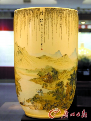 廣州觀眾李先生一連3天前來參觀,他由衷稱贊王芝文將中國(guó)傳統(tǒng)書法藝術(shù)、繪畫藝術(shù)與彩瓷藝術(shù)完美結(jié)合,作品獨(dú)臻神妙,難能可貴。