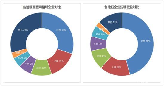 緊隨其后的則是上海、深圳、廣州。其中,上海地區(qū)招聘企業(yè)占總數(shù)的 15%,有 17.9 萬(wàn)個(gè)職位需求,占總數(shù)的 16%;深圳地區(qū)招聘企業(yè)占總數(shù)的 11%,有 11.6 萬(wàn)個(gè)崗位需求,占總數(shù)的 10%;廣州地區(qū)招聘企業(yè)占總數(shù)的 7%,有 8.5 萬(wàn)個(gè)崗位需求,占總數(shù)的 7%。