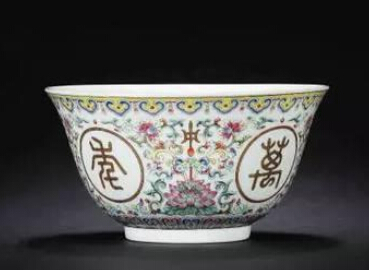 陶瓷收藏與鑒賞:粉彩開光萬年甲子內(nèi)礬紅蝠紋碗