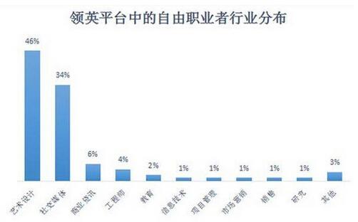 報(bào)告分析,領(lǐng)英用戶中自由職業(yè)者所在行業(yè)覆蓋社交媒體、工程、程序員等多領(lǐng)域。其中從事藝術(shù)設(shè)計(jì)類自由職業(yè)用戶最多,占46%,而且工作范疇不僅限于傳統(tǒng)的高端藝術(shù)品和圖像藝術(shù)領(lǐng)域,還包括音樂家、插畫師及化妝師。