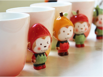 凡家陶瓷,以樸實(shí)的生活追求,生動有趣的卡通形象與不拘一格的泥塑相結(jié)合,給人帶來一種的優(yōu)雅不羈的獨(dú)特感受。水果猴寶杯系列,卡通新型設(shè)計(jì)動物陶瓷杯, 全新噴彩手繪技術(shù),軟化妹紙心的萌萌模樣,不僅僅是個(gè)杯子,舒適好拿的握柄,可愛動物造型給你的閑暇時(shí)光配上好心情。