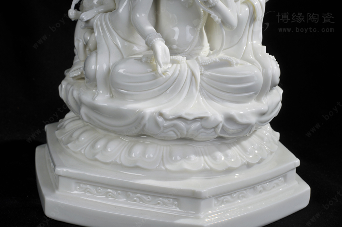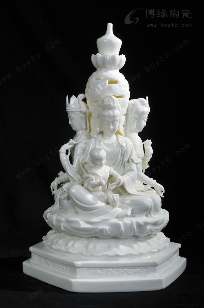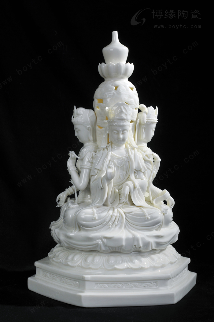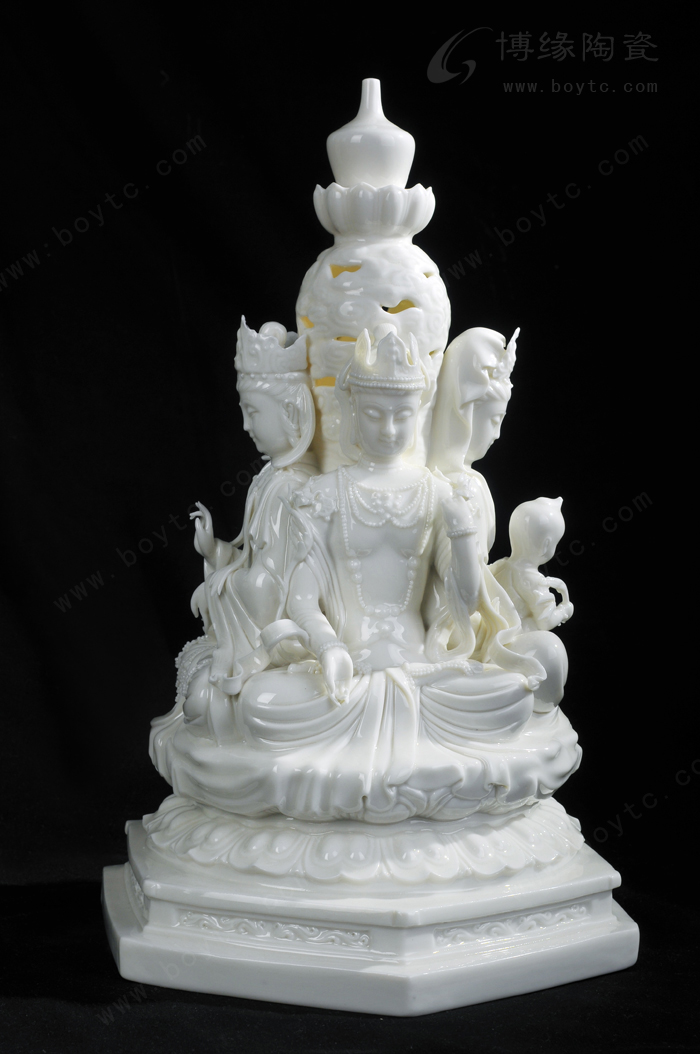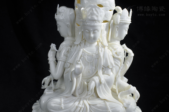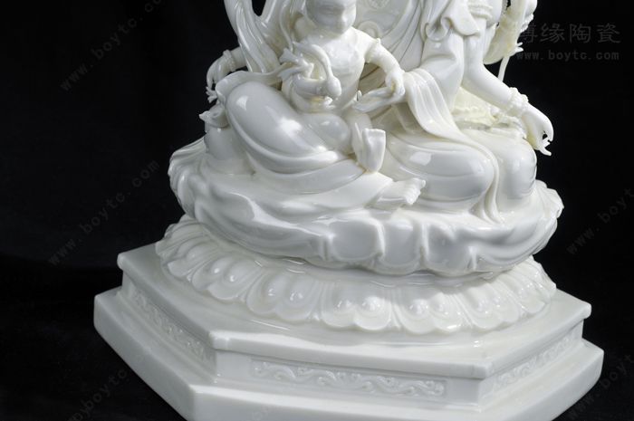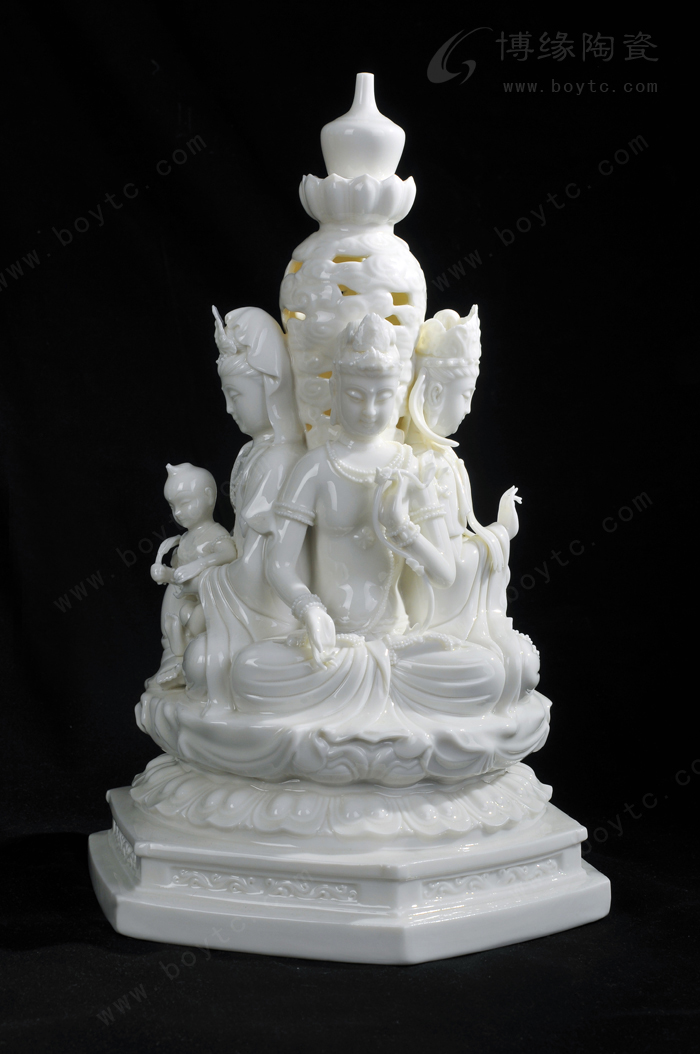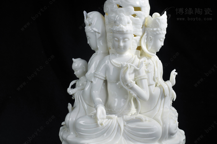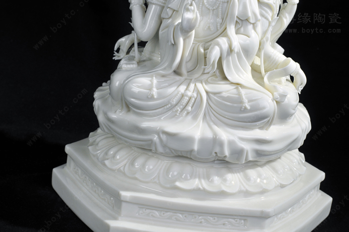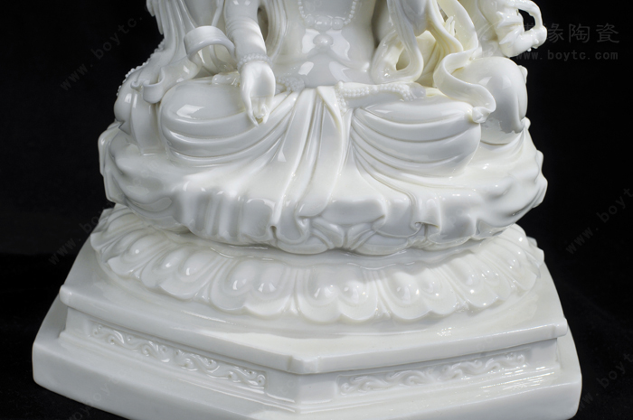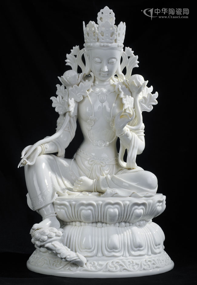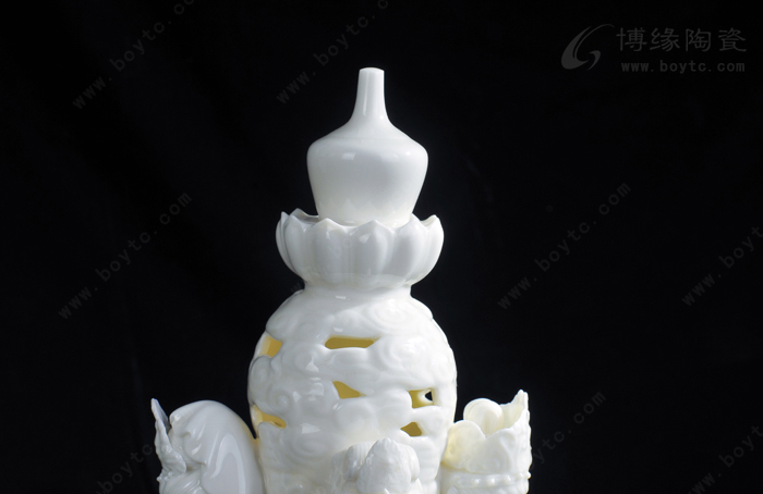 例二:“玉白釉瓷”:以前“德化白”、“中國(guó)白”完全靠瓷土好發(fā)色,最近新研發(fā)的“玉白釉”的發(fā)明,改變了長(zhǎng)期以來(lái)中國(guó)白的傳統(tǒng)概念,以創(chuàng)新方式來(lái)表達(dá)一樣中國(guó)白,和傳統(tǒng)的“中國(guó)白”相比,用“玉白釉”就可以不用很好的瓷土也能表達(dá)的非常溫潤(rùn)如玉、釉色肥厚、耐與琢磨的感覺(jué),有著典型的“豬油白“、“建白”、“象牙白”特征,跟高端的“中國(guó)白”很好的瓷土相比,不僅節(jié)省了很多成本,也創(chuàng)造了一種新的陶瓷藝術(shù)美。