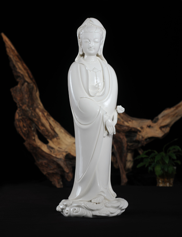 作品《持蓮觀音》,右手持一蓮花,左手藏于袖中,身段修長 ,表現(xiàn)了三十三世觀音中之少女形象,其源于觀音菩薩教化紅孩兒時的應化身,《西游記》中這樣描述,手持蓮花的觀音,東土大唐尋得高僧,指點化身,化解孫悟空,豬無能,沙僧,白龍馬的疾苦。其是人們心目中真善美的代表,該作品榮獲第六屆福建省工藝美術(shù)精品“爭艷杯”大賽銅獎;2014年3月被泉州市博物館永久收藏。