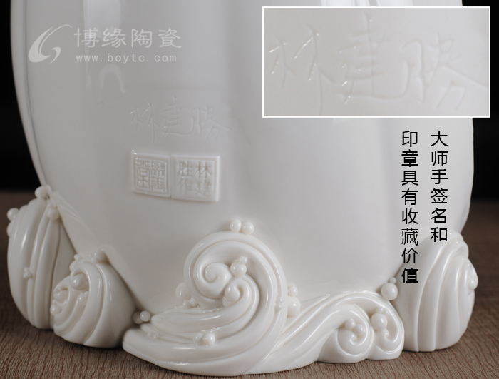 鬼斧神工的雕塑技藝,又有世界名貴的稀有材料、完美無(wú)瑕的燒制工藝的加持,使得林建勝的瓷塑作品深得收藏界的青睞。近十年來(lái),他的瓷塑作品價(jià)格至少翻了10倍以上。眼下,林建勝無(wú)論閱歷、眼力還是智力、體力都是人生的巔峰時(shí)刻,是藝術(shù)家創(chuàng)作成熟時(shí)期與黃金時(shí)期,收藏界深諳林建勝的瓷塑作品升值速度快,升值空間大,市場(chǎng)前景無(wú)量,因此,中國(guó)收藏家協(xié)會(huì)授予林建勝“中國(guó)收藏家喜愛(ài)的陶瓷藝術(shù)大師”榮譽(yù)稱(chēng)號(hào)。