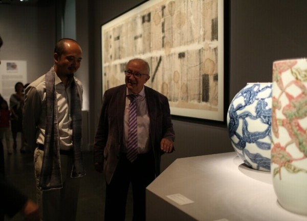 展覽現(xiàn)場,白明與聯(lián)合國教科文組織法國主席Audouze先生