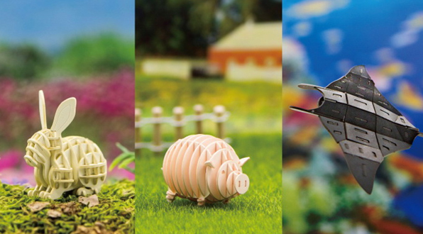 綠團(tuán)創(chuàng)意則以研發(fā)3D智力玩具為核心。孩子們通過拼疊分割好的紙片和木片,完全不借助工具,讓一個立體的動物或建筑物栩栩如生的出現(xiàn),這不僅鍛煉了孩子的腦力和動手能力,也讓家庭親子活動變得更有成就感。