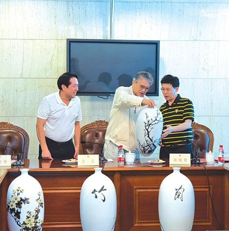 (李鐵映向醴陵捐贈個人陶瓷作品)