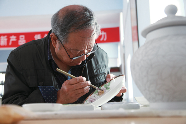 喬氏匠人,祖輩凝心聚力一口氣將陶瓷產(chǎn)業(yè)干到了今天。5月17日,在陽城縣演禮工業(yè)園區(qū)的僑楓瓷業(yè)研發(fā)中心,透過鼻梁上掛著的老花鏡,72歲的喬加勝正在專注地往瓷盤上描花。他忘掉了一切,陽光在他花白的頭發(fā)上閃閃跳動,就這樣一坐就是五六十年。