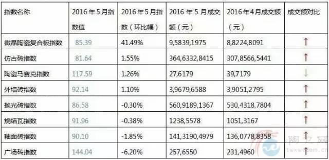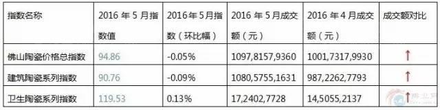 表三、2016年5月與2016年4月建筑陶瓷系列指數(shù)走勢(shì)與成交額對(duì)比