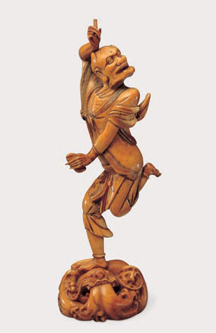 明末,是中國(guó)歷史上章回版畫(huà)小說(shuō)的創(chuàng)作高峰,著名的神魔小說(shuō)《西游記》就是嘉靖——萬(wàn)歷年代問(wèn)世的鴻篇巨制。小說(shuō)中描寫(xiě)了許許多多鬼的身影,以至于當(dāng)時(shí)的畫(huà)師們,根據(jù)這些鬼影,勾勒出了固定的鬼之形象。其實(shí)不僅是在瓷器上,在當(dāng)時(shí)許多工藝品中都有著“魁星”的身影,如下圖這件象牙雕魁星,在形象、動(dòng)態(tài)各方面都具有明末魁星形象的典型特征,加之神情刻畫(huà)生動(dòng)細(xì)膩,可以說(shuō)是同類題材中的代表作。