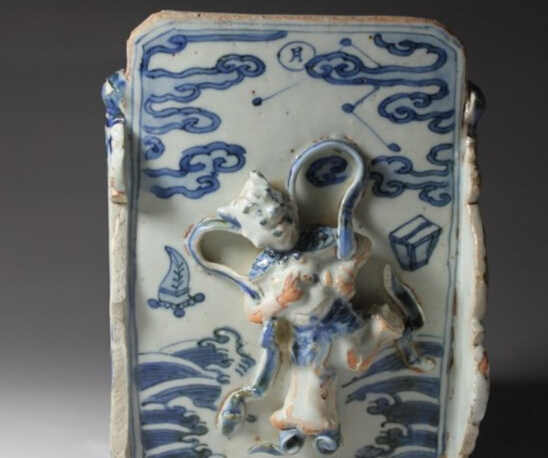 這件明代天啟年間的瓷畫(huà),其中包含“魁星”、“海水”、“鰲”、“星斗”、還有象征知識(shí)的書(shū)。中國(guó)古代畫(huà)師創(chuàng)造出的這種雙重含義的畫(huà)片,方寸之間畫(huà)面生動(dòng),繁而不亂,不得不讓人嘆為觀止。