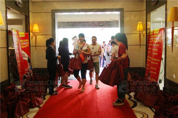 早上,迎著明媚的晨曦,意利寶陶瓷貼心準(zhǔn)備的豪華大巴載著近一千三百多名業(yè)主紛至沓來(lái),開啟一場(chǎng)愉快的購(gòu)磚之旅,F(xiàn)場(chǎng)大紅地毯、地貼、歡迎牌、活動(dòng)宣傳板、意利寶品牌工作人員整齊劃一的列隊(duì)歡迎儀式無(wú)不洋溢著意利寶人對(duì)業(yè)主們火紅的熱情。