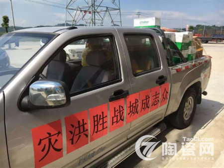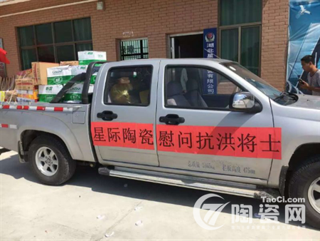 星際陶瓷車輛載著滿滿的慰問物資向抗洪一線出發(fā)。