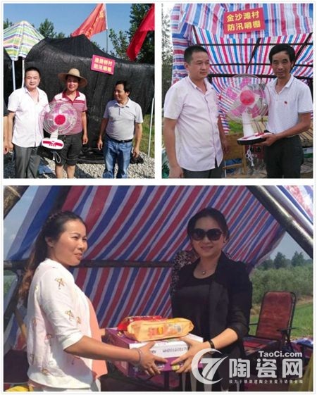 星際陶瓷為抗洪將士送去礦泉水、方便面、餅干、面包等慰問品,董事長夫人何艷娟女士帶著星際陶瓷的伙伴們親身走到各處向現(xiàn)場38條村、一個社區(qū)和指揮中心送上慰問品,另外更準備了40臺風扇,讓各位防洪一線戰(zhàn)士在炎炎夏日中感受到星際陶瓷為他們帶來的徐徐清風與關懷愛心。
