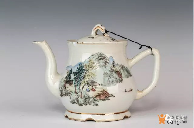 拍品編號(hào):6003,清晚期 淺絳彩山水紋茶壺