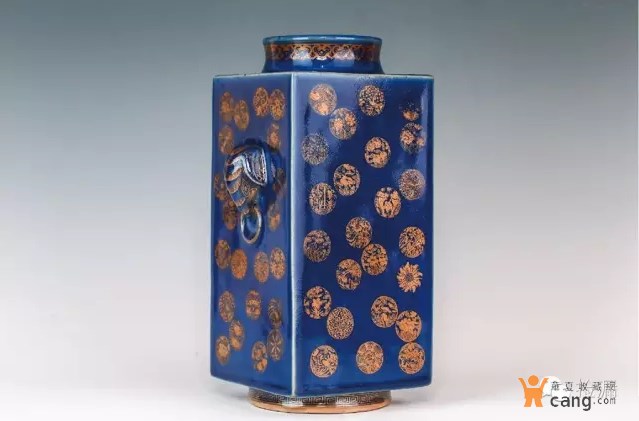 推薦理由:霽藍(lán)釉又稱“積藍(lán)釉”、“祭藍(lán)釉”、“霽青釉”。明、清藍(lán)釉習(xí)稱“霽藍(lán)”,一種高溫石灰堿釉。其生坯施釉,1280~1300℃高溫下一次燒成。色澤深沉,釉面不流不裂,色調(diào)濃淡均勻,呈色較穩(wěn)定。其釉色藍(lán)如深海,釉面勻凈,呈色穩(wěn)定,后人稱其為“霽青”。霽藍(lán)釉一般描金、飾規(guī)整精美紋飾,多為官窯器。琮瓶在瓷器收藏中屬于高檔器形。此琮瓶多個(gè)亮點(diǎn)相加,實(shí)為一件長(zhǎng)久賞藏之器也。
