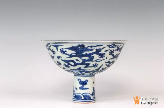 拍品編號(hào):6008,明嘉靖 青花云龍紋高足碗
