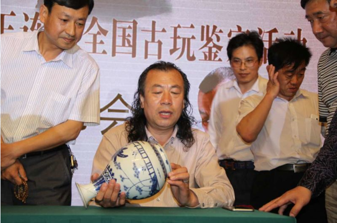 工作人員介紹,范海洋鑒定文物時(shí),從不許外人拍照。因?yàn)樯贁?shù)收藏者把照片拿出去宣稱(chēng),該文物已經(jīng)得到范海洋的認(rèn)可了。面對(duì)筆者,他強(qiáng)調(diào):文物不是一上報(bào)紙、電視就值錢(qián),“出現(xiàn)收藏?zé),很大程度上是有些人忽悠?”