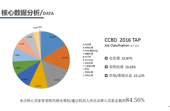 觀眾來(lái)源行業(yè)分類(lèi):建筑工程公司3705人、裝飾公司/設(shè)計(jì)師4520人、房地產(chǎn)開(kāi)發(fā)商3678人、設(shè)計(jì)院/所2410人、材料生產(chǎn)廠家/總代理/經(jīng)銷(xiāo)商45816人。