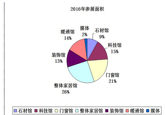 石材館占9%;科技館占15%;門(mén)窗館占21%;整體家居館占26%;裝飾館占13%;暖通館占14%;媒體占2%