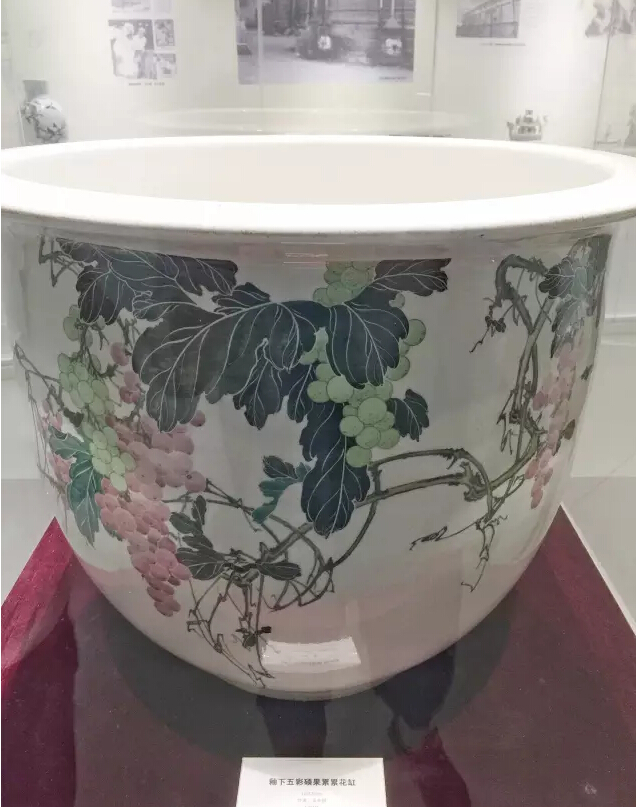釉下五彩碩果累累花缸,是一代宗師吳壽祺先生晚年的經(jīng)典之作,口徑達(dá)到70厘米,純手工打造,氣勢磅礴、技藝精湛。1964年,它曾經(jīng)作為國慶獻(xiàn)禮瓷陳設(shè)在人民大會堂湖南廳。時隔51年后,這件作品首次回到它的原產(chǎn)地展出。