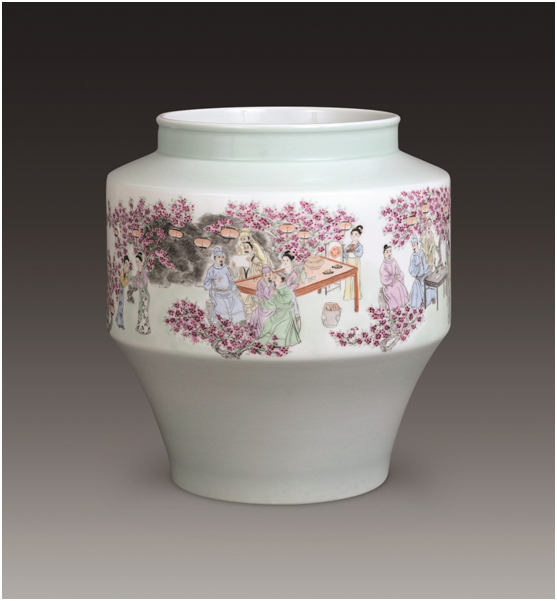 江西省高級工藝美術師傅建文作品:300件粉彩瓷瓶 桃李夜宴