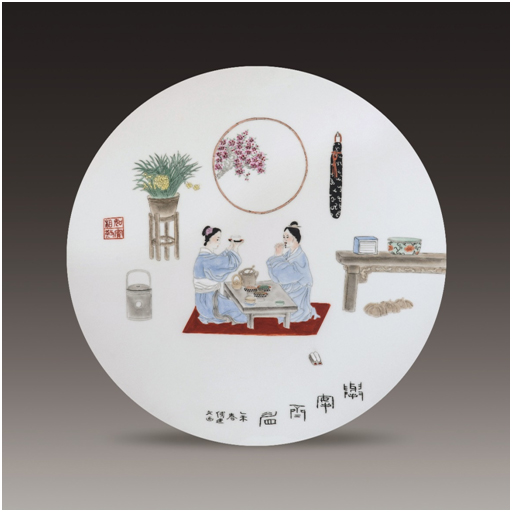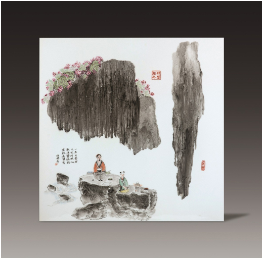 江西省高級工藝美術師傅建文作品:50×50粉彩瓷板 陸羽品茶
