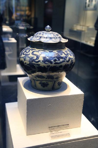 玉溪出土的元末明初的青花獅子滾繡球纏枝牡丹荷葉紋蓋罐