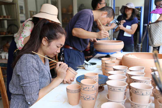 畫工為陶丕描繪圖案