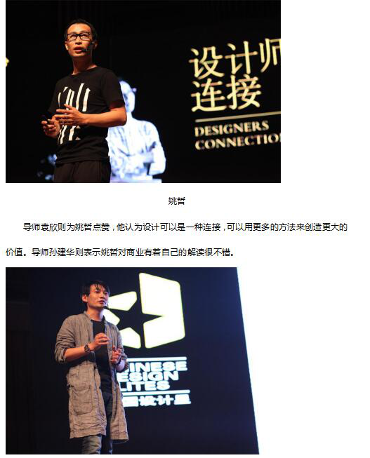 導師袁欣則為姚哲點贊,他認為設計可以是一種連接,可以用更多的方法來創(chuàng)造更大的價值。導師孫建華則表示姚哲對商業(yè)有著自己的解讀很不錯。