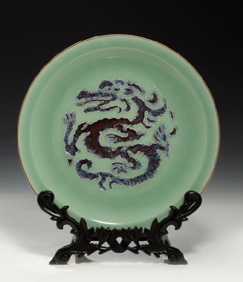 夏侯水平作品:青龍盤(長33CM寬33CM高4.7CM)創(chuàng)作時間2014年