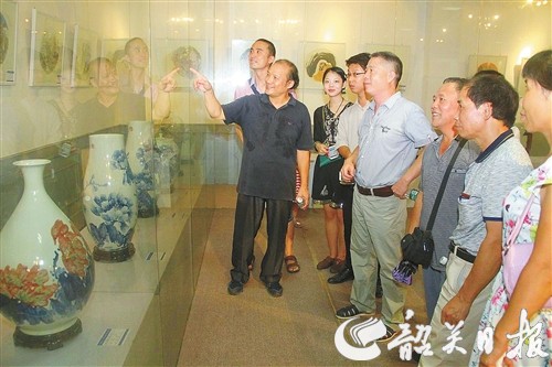 7月30日上午,由韶關市委宣傳部、市文聯(lián)、韶關書畫院主辦的“問道珠山”陶瓷·繪畫藝術小品展在市圖書館一樓開幕。市委常委、韶關軍分區(qū)政委郭偉建出席活動。
