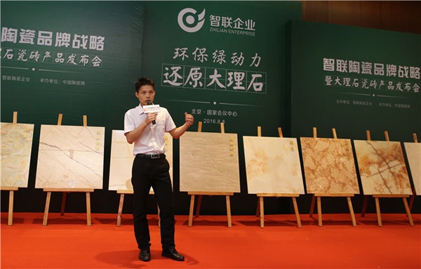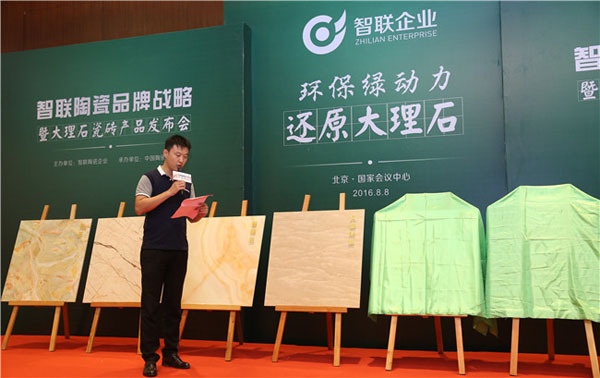 2016年8月8日,由智聯(lián)陶瓷主辦、中國(guó)陶瓷網(wǎng)承辦,智聯(lián)陶瓷品牌戰(zhàn)略暨大理石瓷磚產(chǎn)品新聞發(fā)布會(huì),于北京國(guó)家會(huì)議中心隆重舉行。本次新聞發(fā)布會(huì)共同見(jiàn)證了智聯(lián)陶瓷積極踐行“綠動(dòng)力”提升工程,斥巨資全面改造生產(chǎn)線設(shè)備、革新環(huán)保技術(shù),從生產(chǎn)到產(chǎn)品匹配新型工業(yè)化模式,在產(chǎn)業(yè)綠色發(fā)展大勢(shì)下所取得的研發(fā)創(chuàng)新成果。經(jīng)過(guò)三個(gè)月的匠心淬煉,30余款還原珍稀天然石材的智聯(lián)大理石瓷磚、翡翠玉石產(chǎn)品如期所盼,同時(shí)在現(xiàn)場(chǎng)紛呈亮相,成為智聯(lián)陶瓷引領(lǐng)綠色制造時(shí)潮、厚積工藝精進(jìn)之道的發(fā)軔之作。
