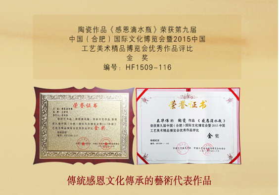感恩之心需要時間的沉淀。“年輕時東奔西走,忙忙碌碌不懂自己需要的是什么,只有歷經(jīng)過波折的人更懂得感恩。”吳華偉感嘆道。時光改變了很多人的容顏,卻沒有同時贈予每個人感恩的心,這也是吳華偉創(chuàng)作感恩滴水瓶的初衷。