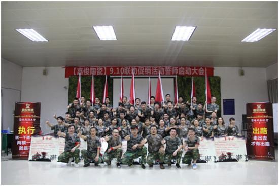 8月16日-8月18日,嘉俊陶瓷在廣州花都開展為期兩天兩夜封閉式、軍事化的廣東區(qū)域聯(lián)動促銷活動誓師啟動大會。來自廣東番禺、南沙、英德、高州、中山、惠州、淡水、興寧、塘廈、常平等地的經銷商老板及其員工,總部業(yè)務和市場部人員共60余人。