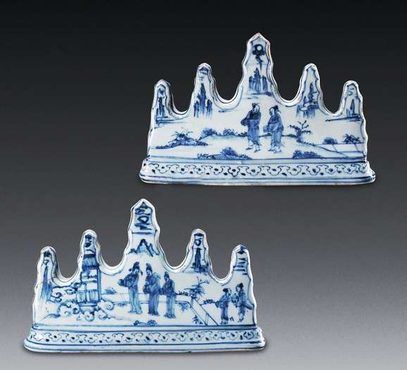 現(xiàn)在流傳下來的筆架以瓷質(zhì)最為普遍,特別是明清之際,樣式更為豐富,流傳更為廣泛,不僅適用,而且講究觀賞,質(zhì)精形美。