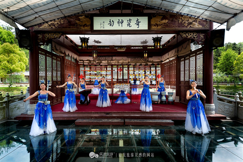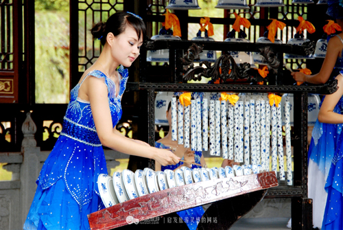 差不多算好時間,就可以去到瓷音水榭觀賞絕妙的瓷樂表演啦。瓷二胡的婉轉(zhuǎn)悠揚、瓷笛的清脆高亢、瓷簫的圓潤輕柔、瓷編鐘的清新脫俗、瓷甌的音色明亮、瓷編磬的回音繞梁······一群身著青花瓷服飾的美麗姑娘,用瓷制成的樂器,奏出了曼妙動聽的旋律,更給神奇的古窯增添了一份浪漫氣息。