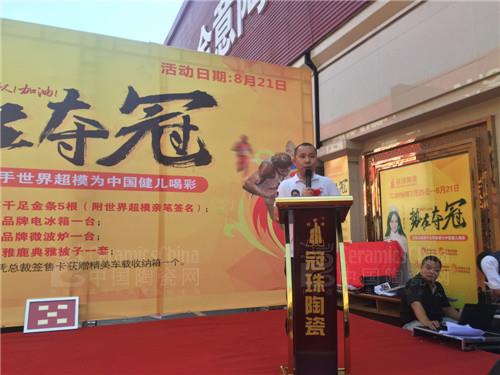 8月21日下午,河北保定和風(fēng)日麗、陽光明媚,建材市場上多場促銷大戰(zhàn)同時上演。鑫豐建材市場冠珠陶瓷更是熱鬧非凡,冠珠大型簽售活動以震撼全城的氣勢在此隆重舉行,吸引了300多位市民參加,再創(chuàng)佳績。