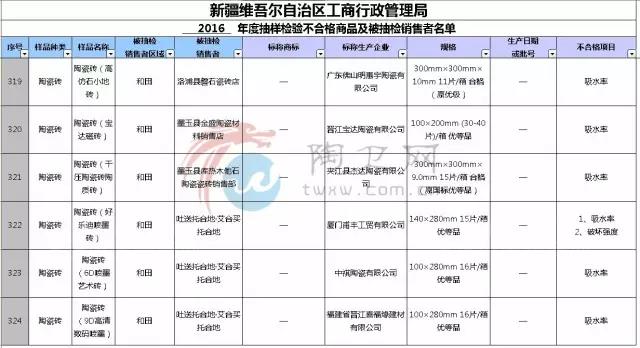 為加強(qiáng)流通領(lǐng)域商品質(zhì)量監(jiān)管,維護(hù)消費(fèi)者合法權(quán)益,2016年上半年新疆維吾爾自治區(qū)工商行政管理局對烏魯木齊市、昌吉回族自治州、伊犁哈薩克自治州、克拉瑪依市、巴音郭楞蒙古自治州、阿克蘇地區(qū)、喀什地區(qū)、和田等地區(qū)流通領(lǐng)域的商品進(jìn)行了商品質(zhì)量抽查檢驗(yàn)。日前,新疆工商局對外通報了檢測情況。據(jù)悉,此次抽查了20組陶瓷磚商品,有三成不合格。