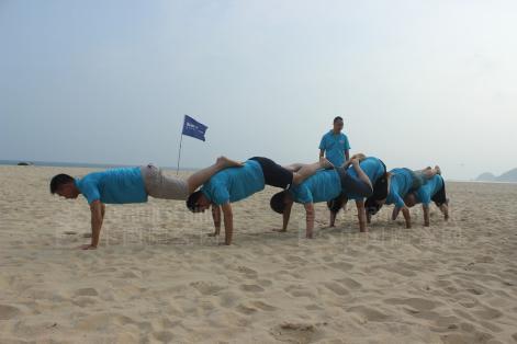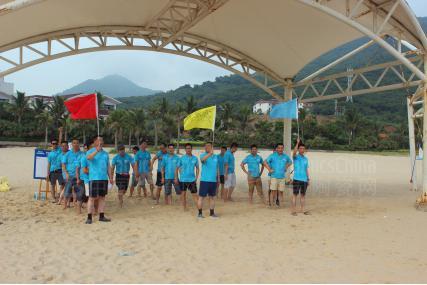 到達(dá)海陵島之后,倍加新陶瓷一行輕便裝束,集中在海陵島大角灣沙灘,在井然有序的組織下開始了拓展活動。按照拓展培訓(xùn)的計劃,倍加新團隊首先了進行了抽簽分隊,分成了三個小隊,有霸氣外漏的火藍(lán)隊、激情四射的無海鷹隊、團結(jié)奮進的戰(zhàn)狼隊。在團隊展示環(huán)節(jié)中,隊員們在各自隊旗上畫隊徽、寫口號,激情吶喊著各自團隊的自編的口號,做出情緒激昂的出場動作。