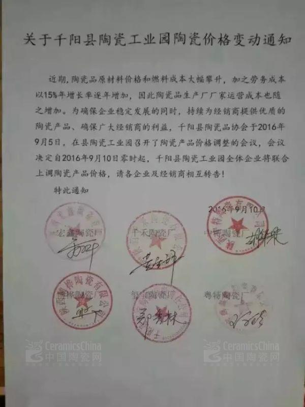 近日,陜西省千陽縣陶瓷工業(yè)園發(fā)出通知,由于陶瓷原材料和燃料成本上漲,加之人工成本上漲15%,導(dǎo)致陶瓷企業(yè)生產(chǎn)運(yùn)行成本上漲。千陽縣陶瓷工業(yè)園召開了陶瓷產(chǎn)品價格調(diào)整會議,決定自9月10日零時起聯(lián)合上調(diào)產(chǎn)品價格。