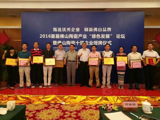2016年8月13日下午,2016首屆佛山陶瓷行業(yè)綠色發(fā)展論壇暨佛山陶瓷十強(qiáng)企業(yè)授牌儀式在佛山市政府迎賓館舉行。蒙娜麗莎集團(tuán)副總裁劉一軍博士出席了此次會(huì)議,并代表公司領(lǐng)取了“佛山陶瓷企業(yè)十強(qiáng)”牌匾和榮譽(yù)證書(shū)。