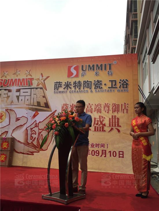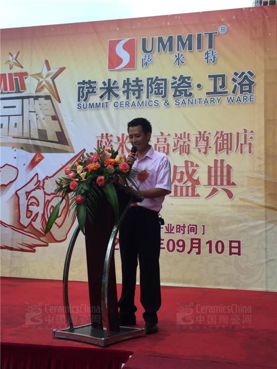 陽春薩米特陶瓷旗艦店總經(jīng)理何總的致辭中說道,今天榮耀開業(yè),離不開企業(yè)和品牌的支持和引導(dǎo),離不開眾多領(lǐng)導(dǎo)和各屆朋友的關(guān)懷和幫助,離不開廣大消費者的認同和信賴。今后,我將專注于薩米特,把團隊的精力都投入到品牌經(jīng)營建設(shè)上,盡全力伴隨薩米特品牌發(fā)展的步伐,再攀新的高峰,為建設(shè)美麗的陽春作出一份力。