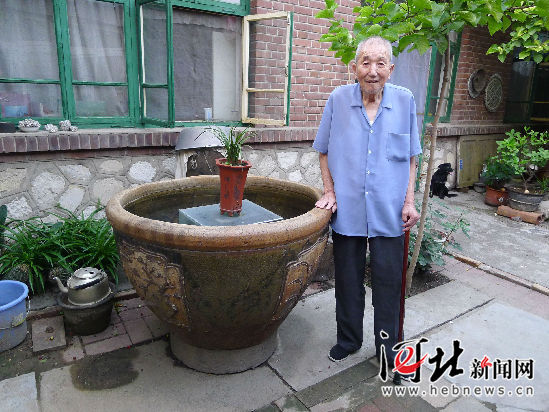 這口蓮花大缸的主人是范寶全老人,范老先生今年94歲高齡了,卻身體硬朗,思維清晰,精神矍鑠。范寶全老人是明永樂二年從山西移民到唐山的陶瓷世家范家的后代,論起來為十三世孫。