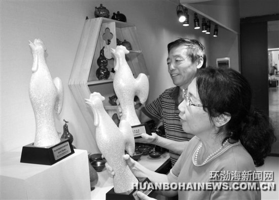 第25屆中國金雞百花電影節(jié)在唐山舉辦之際,唐山玉春天目陶瓷研究所的張惠峰、史艷華經(jīng)過幾個月的努力,完成了窯變金絲釉“金雞報曉”瓷品的高溫一次燒成。“金雞報曉”雄雞造型釉色金碧輝煌、雍容華貴,被電影節(jié)組委會確定為紀念品,向世人展示唐山陶瓷藝術(shù)的魅力。